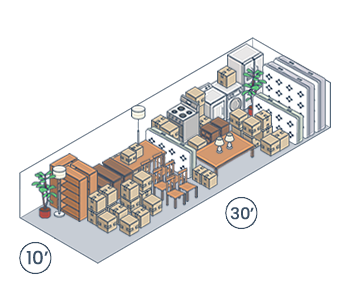 Medium 10x10 units are similar to one side of a garage. Good for household furniture, travel gear, and office furniture.